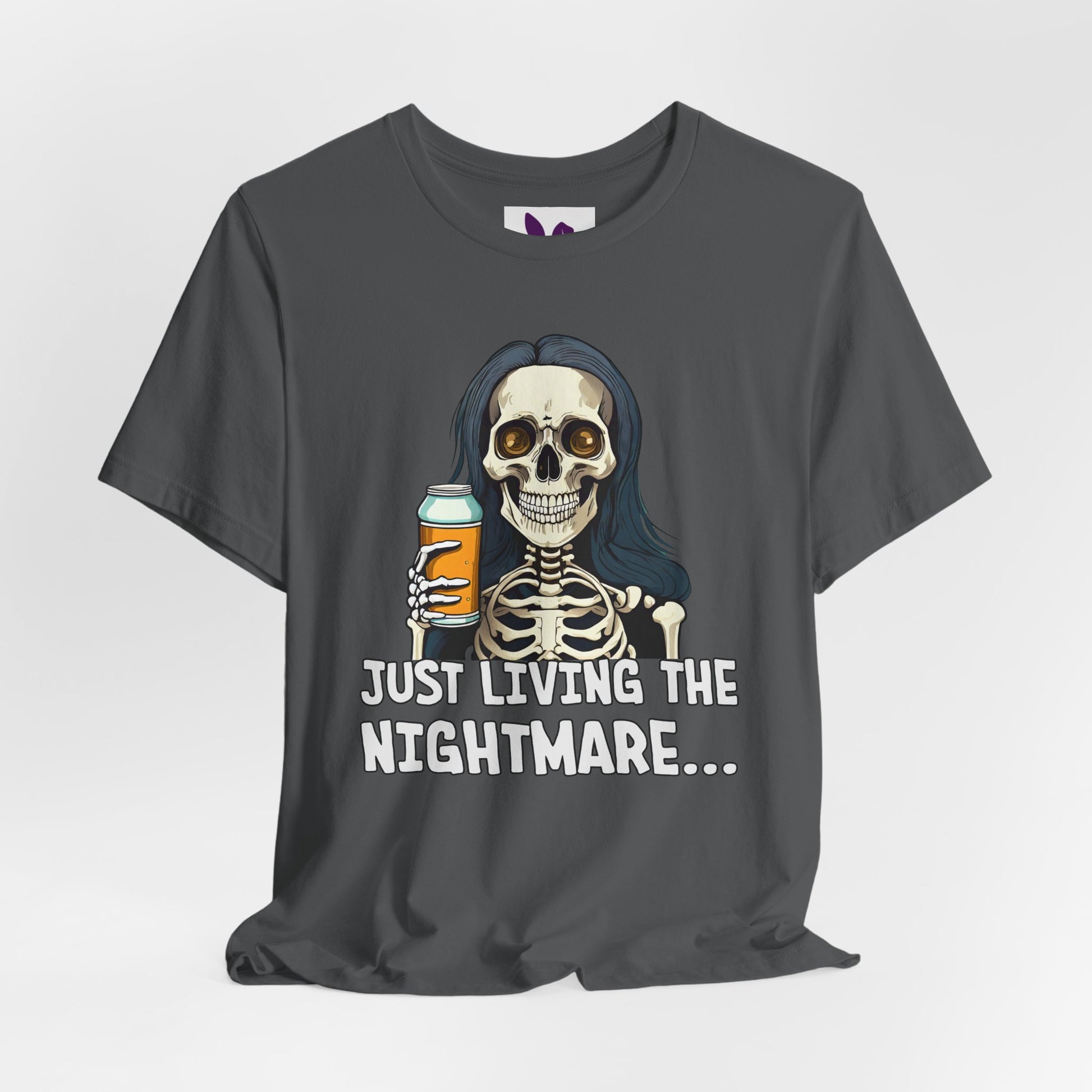 Just Living the Nightmare T-Shirt | Funny Skeleton Beer Tee | Unisex Cotton Shirt